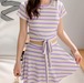 IT143-1 ボーダー 半袖 パープルマルチカラー